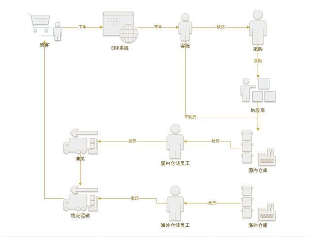 話不多說,上圖為敬。因為我做的是出口跨境電商,所以這套業(yè)務(wù)流程是出口電商的流程,一般發(fā)貨的方式會有國內(nèi)倉庫直發(fā)貨和海外倉庫發(fā)貨。如何選擇發(fā)貨方式,那就是成本,效率等多種因素的綜合考量了。這里畫的是一套正常的流程,并沒有包含貨物被拒收或者退貨的逆向流程。